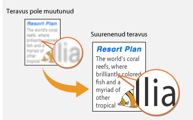 ![]() | Saate muuta kujutise teravust. Kui soovite häguse teksti ja jooned teravamaks muuta, suurendage teravust; ajakirjafotode ilme paremaks muutmiseks vähendage teravust. |