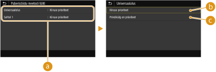 <Universaalalus> <Kiiruse prioriteet>  <Prindikülg on prioriteet> <Sahtel 1> <Kiiruse prioriteet>  <Prindikülg on prioriteet> <Sahtel 2>*1 <Kiiruse prioriteet>  <Prindikülg on prioriteet> <Sahtel 3>*1 <Kiiruse prioriteet>  <Prindikülg on prioriteet> <Sahtel 4>*1 <Kiiruse prioriteet>  <Prindikülg on prioriteet> |