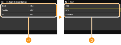 <Tekst> <sRGB> <NTSC>  <Ühtne RGB> <Graafika> <sRGB> <NTSC>  <Ühtne RGB> <Pilt> <sRGB> <NTSC>  <Ühtne RGB> |