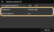 Faksinumbri ja seadme nime salvestamine). Registreeritud nimi saadetakse sihtkohta saatja teabena (