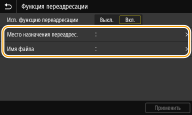 Выберите <Вкл.> в <Исп. функцию переадресации>.
