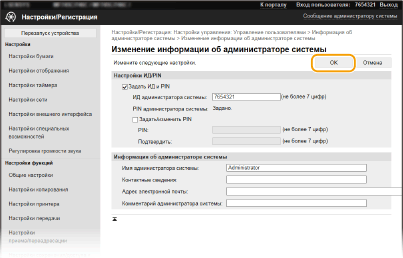 Некоторые параметры можно изменять только после входа в систему в режиме администратора системы. Для некоторых параметров могут требоваться операции, отличные от описанной здесь процедуры. |