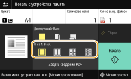 ![]() При использовании файла PDF можно напечатать 9 или 16 страниц данных изображения на одной стороне листа бумаги с помощью <N на 1> из <Задать сведения PDF>. |