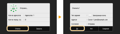 Если требуется отменить отправку документов сразу после выбора <Начало>, выберите <Отмена> на экране или нажмите . Также можно отменить отправку документов после проверки состояния отправки.