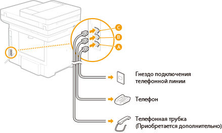 При использовании дополнительной телефонной трубки подключите ее к гнезду подключения телефонной трубки (