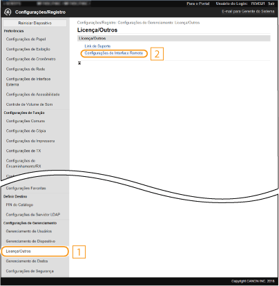 Utilizar o painel de controloTambém pode ativar ou desativar a comunicação TLS codificada a partir de <Menu> no ecrã Início. <Interface Remota>