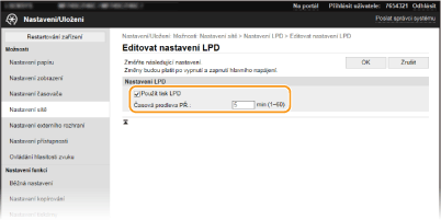 Políčko zaškrtněte, chcete-li tisknout pomocí protokolu LPD. Pokud tisk LPD nepoužíváte, zaškrtnutí políčka zrušte. [Použít tisk RAW]