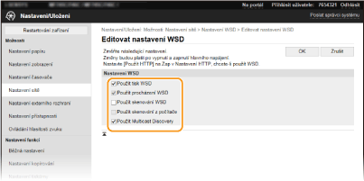 Políčko zaškrtněte, chcete-li získávat informace o zařízení z počítače pomocí protokolu WSD. Toto políčko se automaticky zaškrtne, je-li zaškrtnuto políčko [Použít tisk WSD]. [Použít skenování WSD]