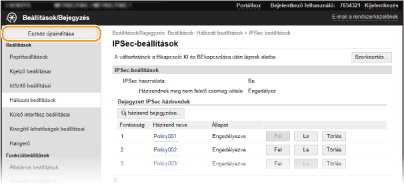 Kattintson a [Beállítások/Bejegyzés] lehetőségre a Portál oldalon (főoldalon). A Távoli felhasználói felület képernyője