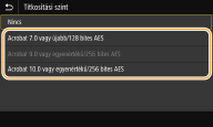 Az <Acrobat 10.0 vagy egyenértékű/256 bites AES> érték az <Acrobat 9.0 vagy egyenértékű/256 bites AES> értékre módosítható egy másik, kompatibilis verziónál.