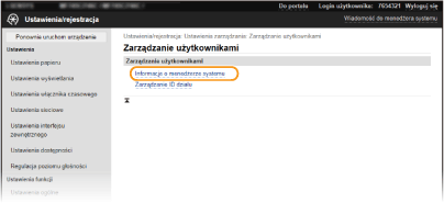 Niektóre ustawienia można zmieniać tylko po zalogowaniu się w trybie menedżera systemu.