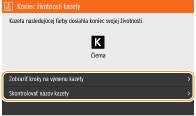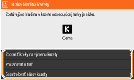 Ak sa správa zobrazí pri príjme faxu/i-faxu alebo nastavovaní výstupu automatického hlásenia, prijaté faxy/i-faxy a hlásenia sa uložia do pamäte, aby po tlači nevyzerali vyblednuté. Ak chcete pokračovať v tlači, aj keď je množstvo zostávajúceho tonera v kazete s tonerom nízke, nastavte položku <Pokr. v tlači pri níz. hlad. v kaz.> na možnosť <Zap.>. <Pokr. v tlači pri níz. hlad. v kaz.>