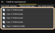Si <Mostrar registre de treballs> està establert en <Desactivat>, no podeu comprovar el registre del treball de còpia. <Mostrar registre de treballs>