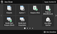 Ana Ekran'da görüntülenen düğmeleri yeniden düzenleyebilirsiniz. Ayrıca, kısayol düğmeleri ekleyerek işlevleri seçmeyi daha kolay hale getirmek için Ana Ekran'ı özelleştirebilirsiniz. Ana Ekran'ı Özelleştirme
