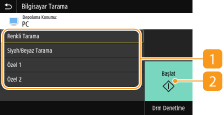 Taramayı başlatmak için bu düğmeyi kullanın. <SB> öğesini seçmek siyah beyaz taramayı başlatır. <Renkli> öğesini seçmek renkli taramayı başlatır.