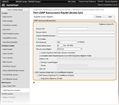 [LDAP Sunucusu (Arama İçin)] veya [LDAP Sunucusu (Kimlik Doğrulama İçin)] için [Yeni Sunucu Kaydet] öğesini tıklatın.