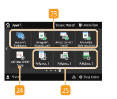 Εμφανίζουν τις αγαπημένες ρυθμίσεις που έχετε καταχωρήσει για τις λειτουργίες αντιγραφής, φαξ και σάρωσης. Προσθήκη πλήκτρων στην οθόνη Αρχική