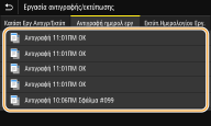Επιλέξτε το έγγραφο την κατάσταση του οποίου θέλετε να ελέγξετε στην καρτέλα <Κατάστ Εργ Αντιγρ/Εκτύπ>.