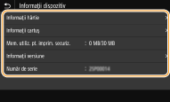 <Mem. utiliz. pt. imprim. securiz.>Afişează cantitatea de memorie folosită pentru stocarea informaţiilor pentru documente securizate.