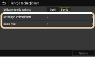 Selectaţi <Pornit> în <Utilizare funcţie redirecţ.>.