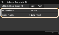 Selectaţi <Pornit> în <Utilizare reducere dimens. RX>