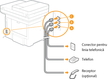 Conectaţi cablul telefonic inclus la conectorul pentru linia telefonică de pe aparat (