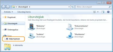 Hautatu inprimatzailearen zerbitzaria hemen: [Network] edo hemen: [My Network Places].