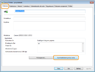 Inprimagailuaren kontrolatzailearen funtzionamendua egiazta dezakezu Windows-en froga-orri bat inprimatuz.