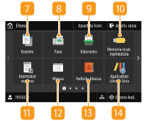 Bistaratu kopiatzeko, faxentzako eta eskaneatzeko erregistratutako "Ezarpen gogokoak". Etxea pantailari botoiak gehitzea