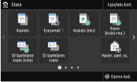 Kopiatzeko, faxak bidaltzeko eta eskaneatzeko ezarpen berak bizkor berreskuratzeko, hauek ezarpen gogoko gisa erregistratzeko aukera duzu. Etxea pantailari erregistratutako ezarpen konbinazioak lasterbide-botoi gisa gehitzeko aukera duzu. Sarritan erabilitako ezarpenak erregistratzea