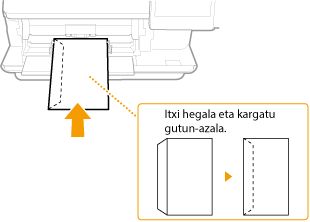 Atal honetan gutun-azalak nahi duzun orientazioarekin nola kargatu behar diren azaltzen da, eta gutun-azalak kargatu baino lehen jarraitu beharreko prozedurak ere bai. Gutun-azalak erabilera anitzeko erretiluan kargatzeko prozedura orokorraren deskribapen bat jasotzeko, ikusi Papera erabilera anitzeko erretiluan kargatzea.