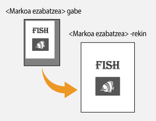 Irteera-papera baino txikiagoak diren originalak kopiatzerakoan, baliteke marko-lerroak agertzea ertzen inguruan kopiatutako irudian. Bat besteari begira dauden liburu lodi baten orrialdeak kopiatzerakoan, baliteke ertzak agertzea. <Ezabatu markoa> funtzioak marko-lerro eta ertz ilun hauek ezabatzeko aukera ematen dizu.
