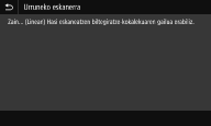 Zehaztutako denbora-tarte batean eskaneatzea burutzen ez bada ondorengo pantaila bistaratu ondoren (makina linean ezarrita dago eskaneatzeko), makina automatikoki lineaz kanpo jarriko da. Ezarri makina lineaz kanpo jartzeko behar den denbora-tartea.