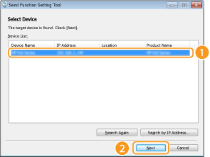 Sakatu [Search Again]. Arazoak jarraitzen badu, sakatu [Search by IP Address], sartu makinaren IP helbidea eta sakatu [OK].
