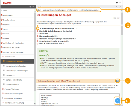 Klicken Sie hier, um Parameter einzustellen, so dass Sie festlegen können, wie das Anwenderhandbuch angezeigt werden soll, wie zum Beispiel die Zeichengröße oder das Layout.