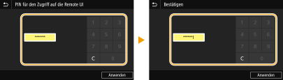 Geben Sie die PIN für den Remote UI-Zugriff an.