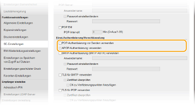 Aktivieren Sie das Kontrollkästchen, wenn Sie den POP3-Server für die Authentisierung vor dem Senden von E-Mails oder I-Faxen verwenden möchten.