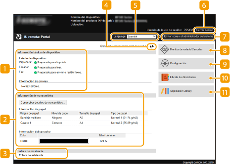 Al iniciar sesión en la IU remota aparece la siguiente página del Portal. En esta sección se describen los elementos que aparecen en la página del Portal y las operaciones básicas.