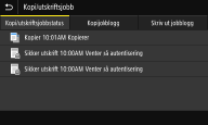 Viser gjeldende status for det valgte elementet. <Kopi/utskriftsjobb>-skjermen vises under som et eksempel.