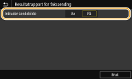 Når du velger <På>, kan en del av et sendt dokument bli inkludert i senderesultatrapporten.
