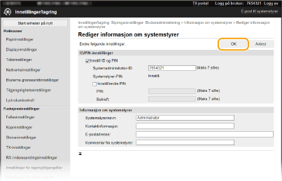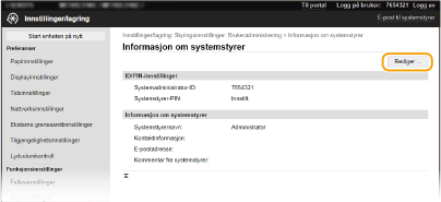 Noen innstillinger kan bare endres når du er logget inn i systemstyrermodus. Noen innstillinger kan kreve operasjoner som skiller seg fra prosedyren som beskrives her. |