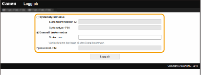 Angi systemstyrer-ID og PIN-kode [Generell brukermodus]