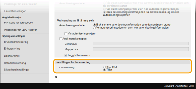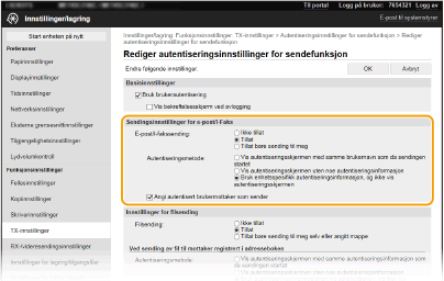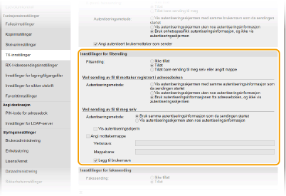 Når [Tillat bare sending til meg selv eller angitt mappe] er spesifisert i [Filsending]