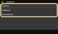 Du kan bruke <Finjuster> til å justere tonertettheten til tre tetthetsnivåer - høy tetthet, middels tetthet og lav tetthet. |