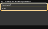 Utskriften stanser hvis det oppstår en viss feil i prosessen. Hvis du imidlertid setter dette elementet på <På>, blir visse feil hoppet over og utskriften kan fortsette. Normalt skal dette elementet stå på <Av>.