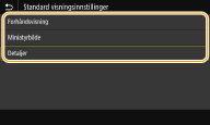 <Papir> <Multibrett> <Skuff 1> ![]() <Skuff 2>* <Skuff 3>* <Skuff 4>* <Antall kopier> 1 til 999<2-sidig utskrift> <Av> ![]() <Bok> <Kalender> <Utskriftskvalitet> <Tetthet>* 17 nivåer <Finjuster> <Høy>/<Middels>/<Lav> 17 nivåer <Tonersparing> <Av> ![]() <På> <Bilderensing> <Av> <På> ![]() <Oppløsning> <1200 dpi> <600 dpi> ![]() <Angi JPEG/TIFF-detaljer> <Lysstyrke> Fem nivåer <N på 1> <Av> ![]() <2 på 1> <4 på 1> <Originaltype> <Fotoprioritet> ![]() <Tekstprioritet> <Halvtoner> <Gradering> <Feilspredning> ![]() <Angi PDF-detaljer> <N på 1> <Av> ![]() <2 på 1> <4 på 1> <6 på 1> <8 på 1> <9 på 1> <16 på 1> <Utskriftsområde> <Alle sider> ![]() <Angitte sider> <Forstørr/forminsk til papirformat> <Av> ![]() <På> <Forstørr utskriftsområde> <Av> ![]() <På> <Skriv ut kommentarer> <Av> <Auto> ![]() <Andre innst.> <Halvtoner> <Oppløsning/gradering> <Tekst> <Oppløsning> ![]() <Gradering> <Høy oppløsning> <Grafikk> <Oppløsning> ![]() <Gradering> <Høy oppløsning> <Bilde> <Oppløsning> ![]() <Gradering> <Høy oppløsning> <Gråtoneskalakonvertering> <sRGB> <NTSC> ![]() <Uniform RGB> |