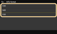 På de fleste Ethernet-nettverk er 1500 byte den maksimale størrelsen på en pakke som kan sendes. En pakke henviser til en bunke med data som de opprinnelige dataene deles opp i, før de sendes. MTU kan variere fra nettverk til nettverk. Endre innstillingene på maskinen etter behov. Kontakt nettverksadministratoren for mer informasjon.