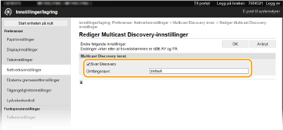 1 | Velg [Multicast Discovery innst.] [Rediger]. |