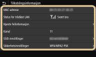 Hvis IP-adressen vises som "0.0.0.0", er den ikke riktig konfigurert. Det kan oppstå tilkoblingsfeil hvis du kobler maskinen til en svitsjehub eller en bro, selv om IP-adressen er riktig konfigurert. Dette problemet kan løses ved å angi et visst intervall før maskinen begynner å kommunisere. Angi en ventetid for å koble til et nettverk Du kan skrive ut en liste over de gjeldende nettverksinnstillingene. Brukerdataliste / dataliste for systemstyrer |