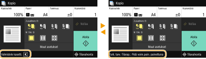 Näytössä näytetään viestejä tilanteissa, kun esimerkiksi paperi loppuu tai väriainekasetin käyttöikä päättyy. Katso lisätietoja online-opassivuston kohdasta Vianmääritys (FAQ).